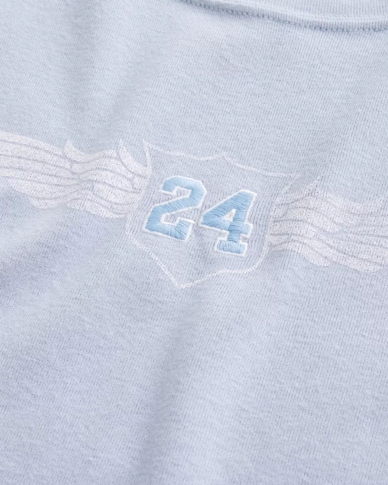 A super soft 100% cotton baby tee designed with a slightly shrunken silhouette. Number graphic embroidery with print details. Crew neckline, short sleeves. Slim Fit.