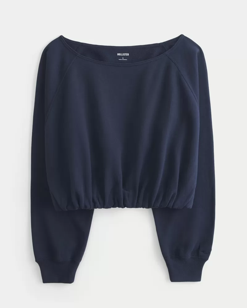 Off-the-Shoulder Bubble Hem Sweatshirt
