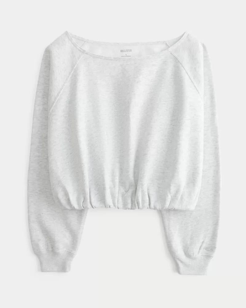 Off-the-Shoulder Bubble Hem Sweatshirt,Off-the-Shoulder Bubble Hem Sweatshirt