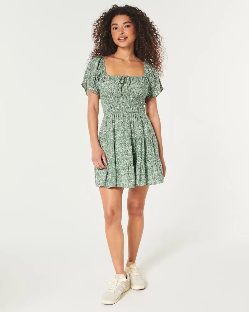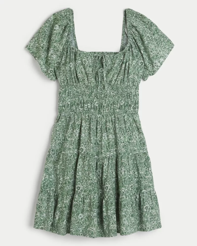 Unbelievably soft and super cute, this dress features hidden shorts and pockets. Channeled detailing through the waist, back detail, center tie detail at neckline, short sleeves, open back.