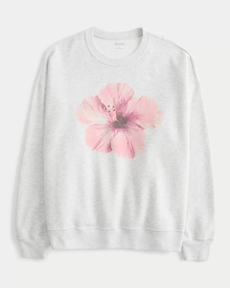 This super soft fleece sweatshirt features a flower print graphic, crew neckline and long sleeves. Oversized Fit.