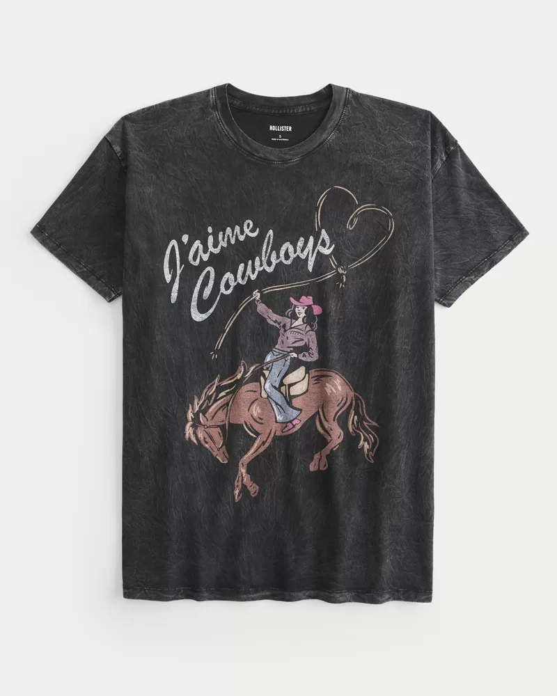 This super soft 100% cotton tee features western-inspired J’aime Cowboys print graphics, a crew neckline and short sleeves. Oversized Fit.