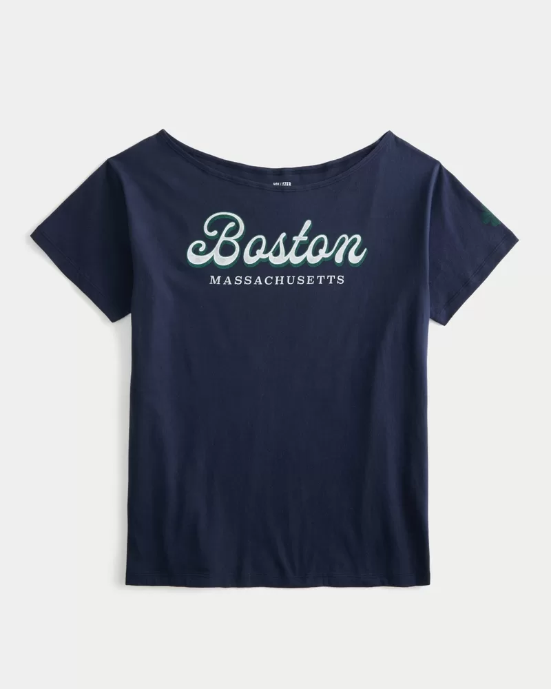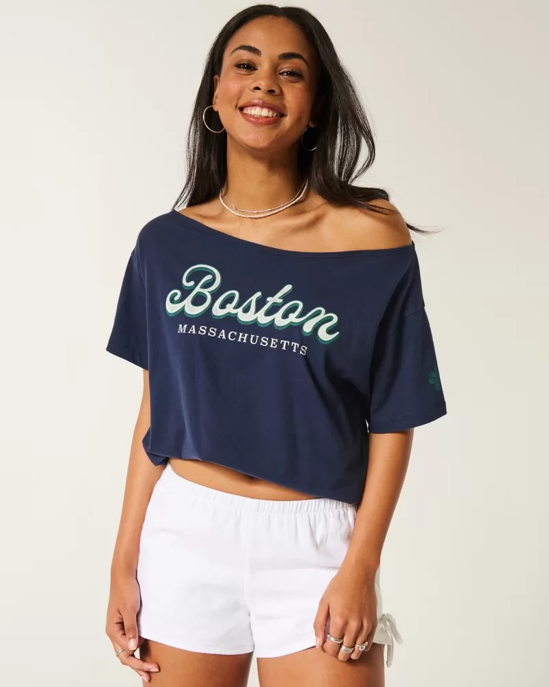 Oversized Off-the-Shoulder Boston Graphic Tee