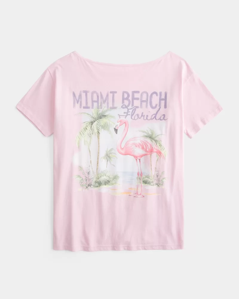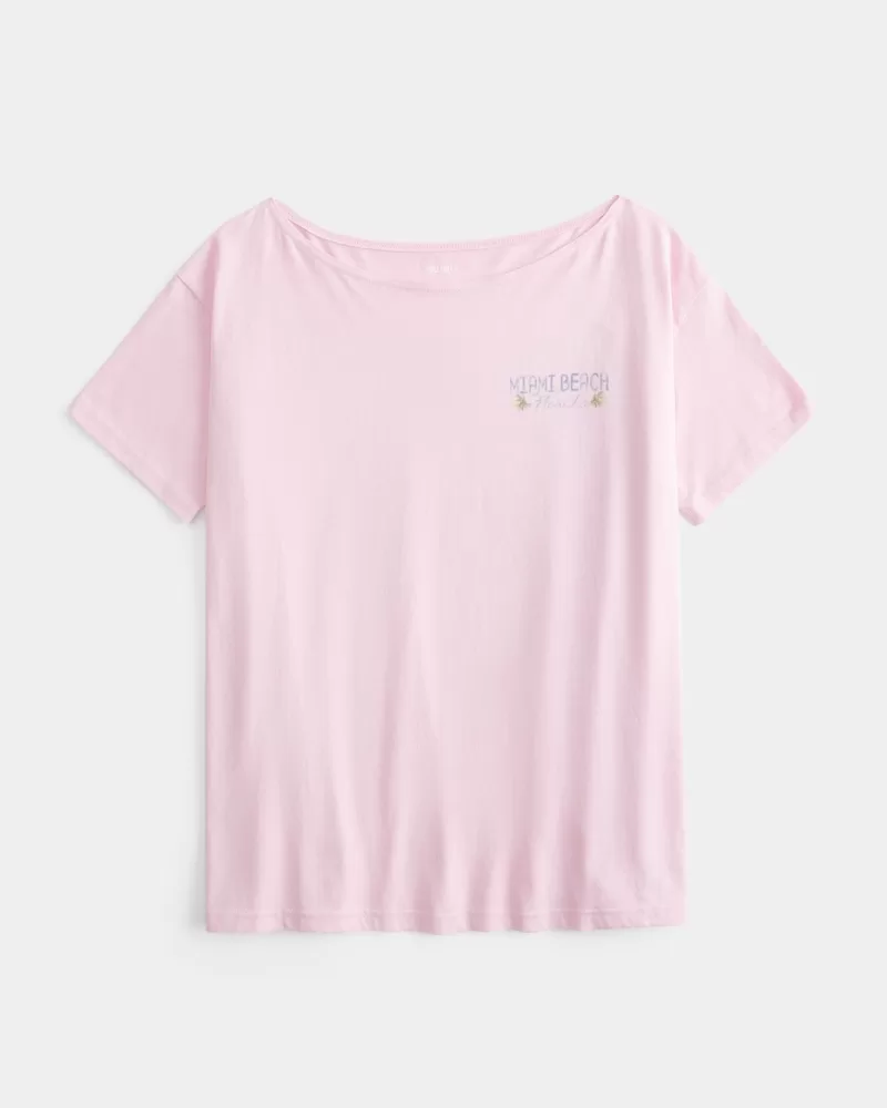 Oversized Off-the-Shoulder Miami Beach Graphic Tee