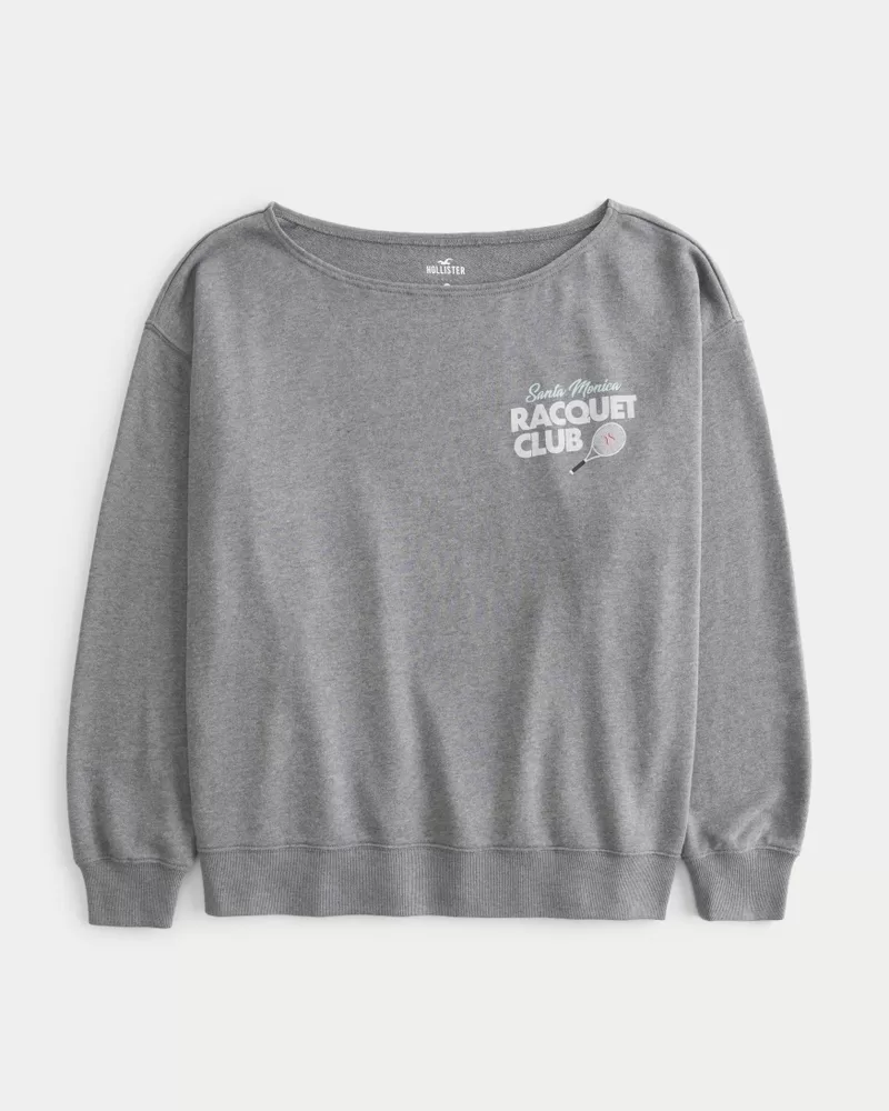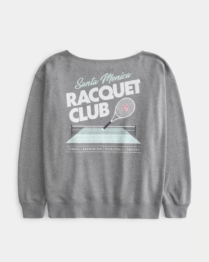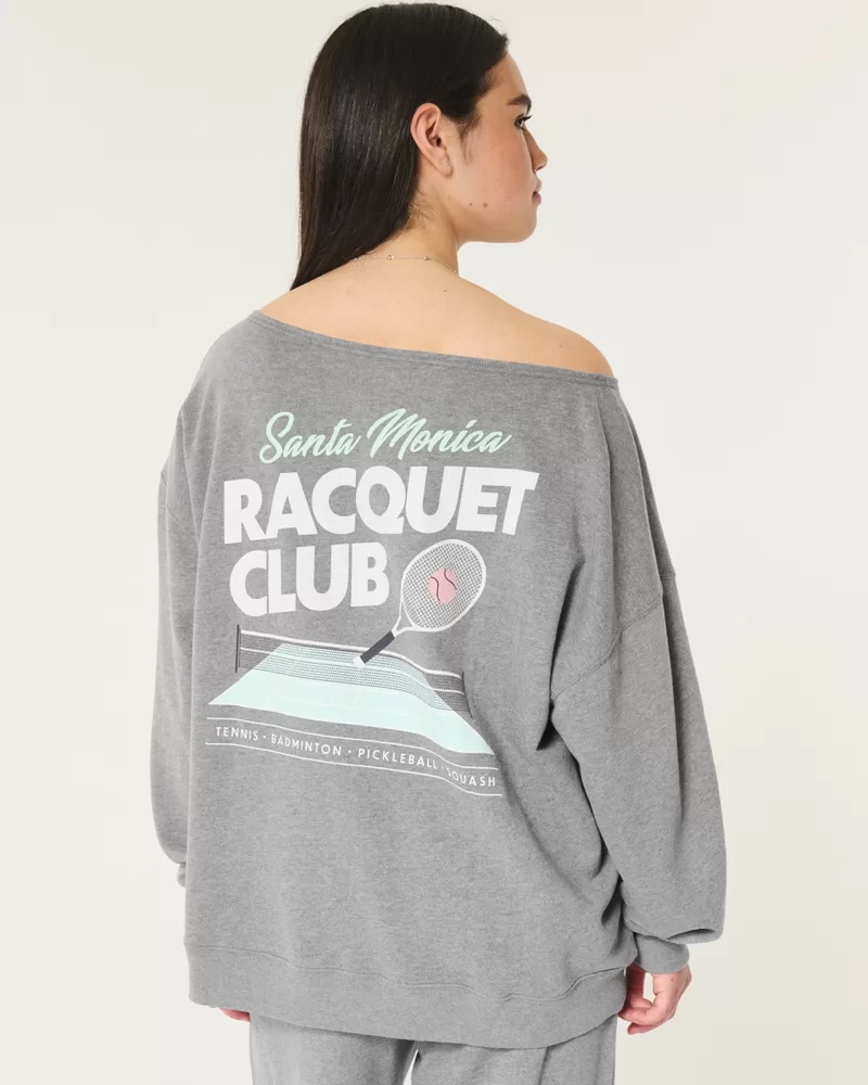 Oversized Off-the-Shoulder Racquet Club Graphic Sweatshirt