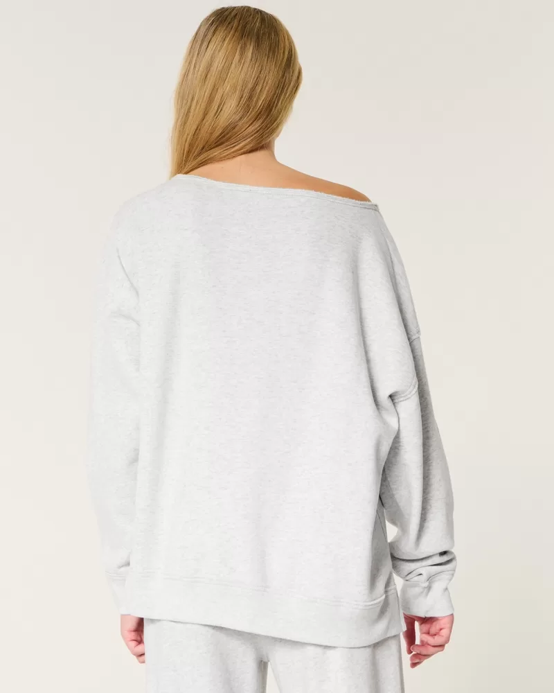A cute and comfy sweatshirt in super soft fleece fabric, designed with a relaxed neckline that can be worn off the shoulders. Split hem details, long sleeves. Oversized Fit.