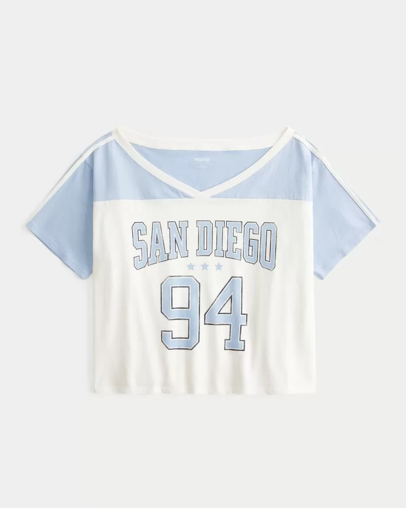 Oversized Off-the-Shoulder Varsity San Diego Graphic Tee