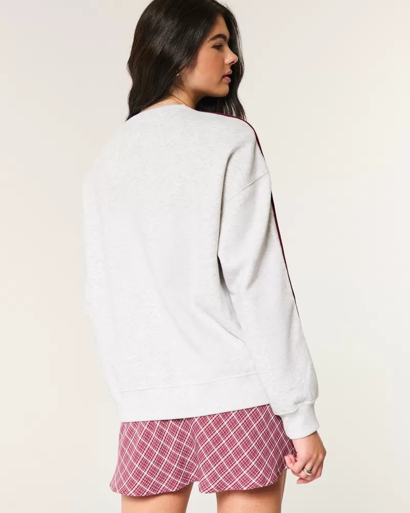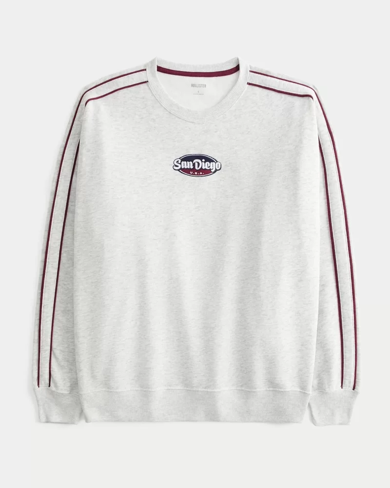 This super soft fleece sweatshirt features an embroidered San Diego graphic, crew neckline and stripes along the shoulders and sleeves. Oversized Fit.