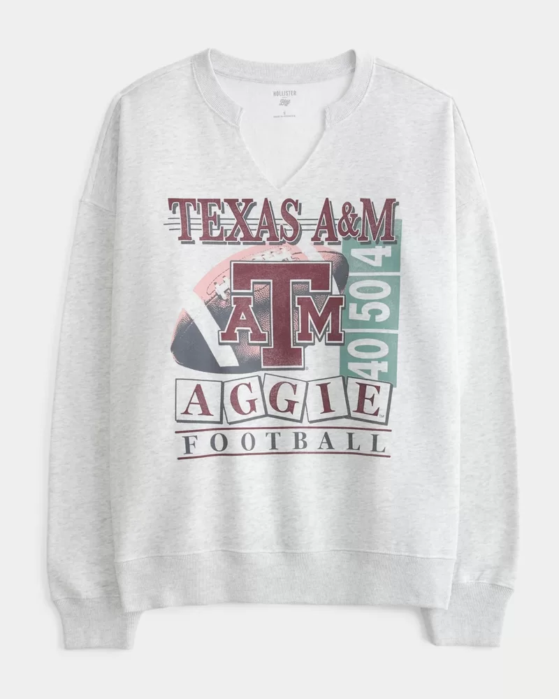 Oversized Texas A&M University Notch-Neck Sweatshirt