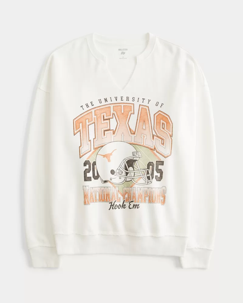 Oversized University of Texas Graphic Notch-Neck Sweatshirt