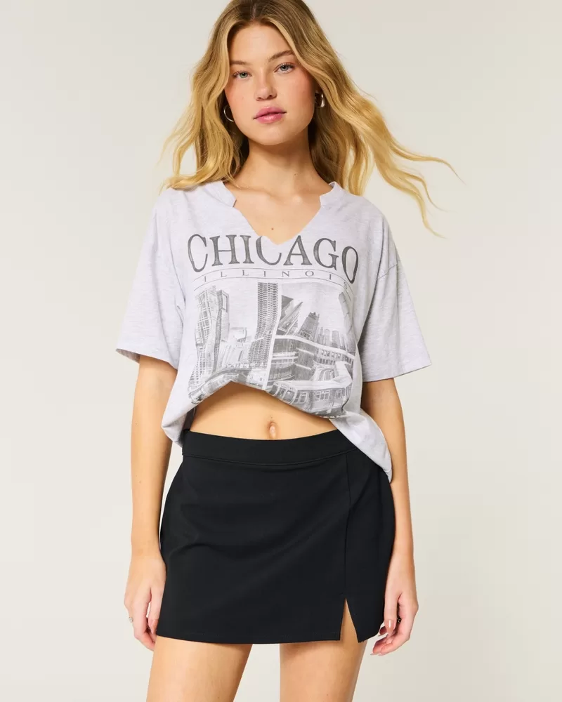 This super cute mini skort features hidden knit shorts, a center back zipper and hem notch detail. Soft ponte fabric, a-line silhouette, high-rise waist.