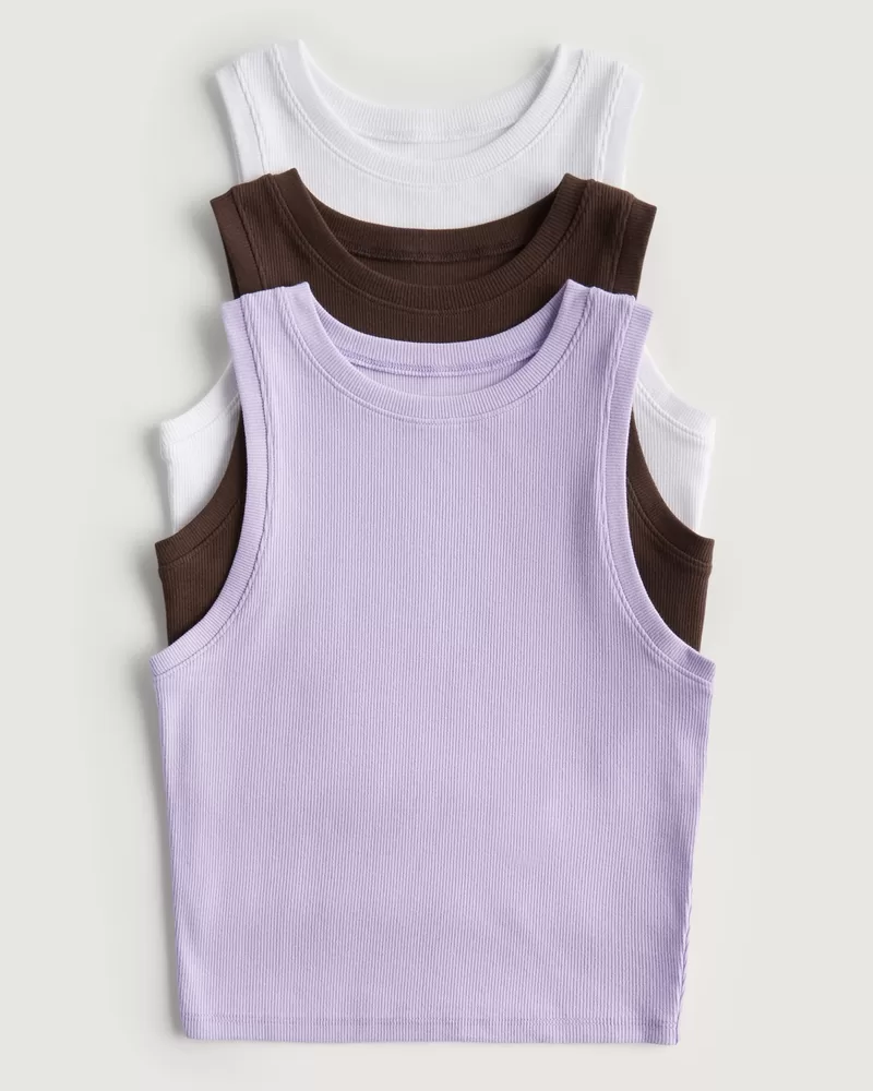 Ribbed High-Neck Tank 3-Pack