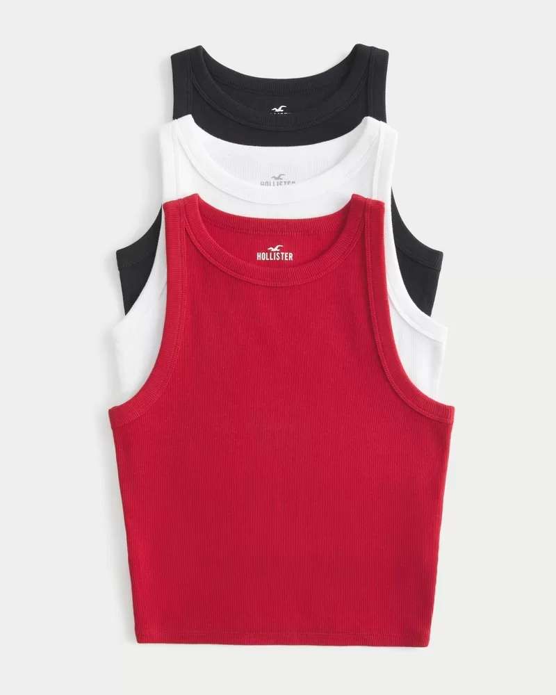 A 3-pack of comfy tanks made with super soft ribbed fabric with stretch. Flattering high neckline. Slim Fit.