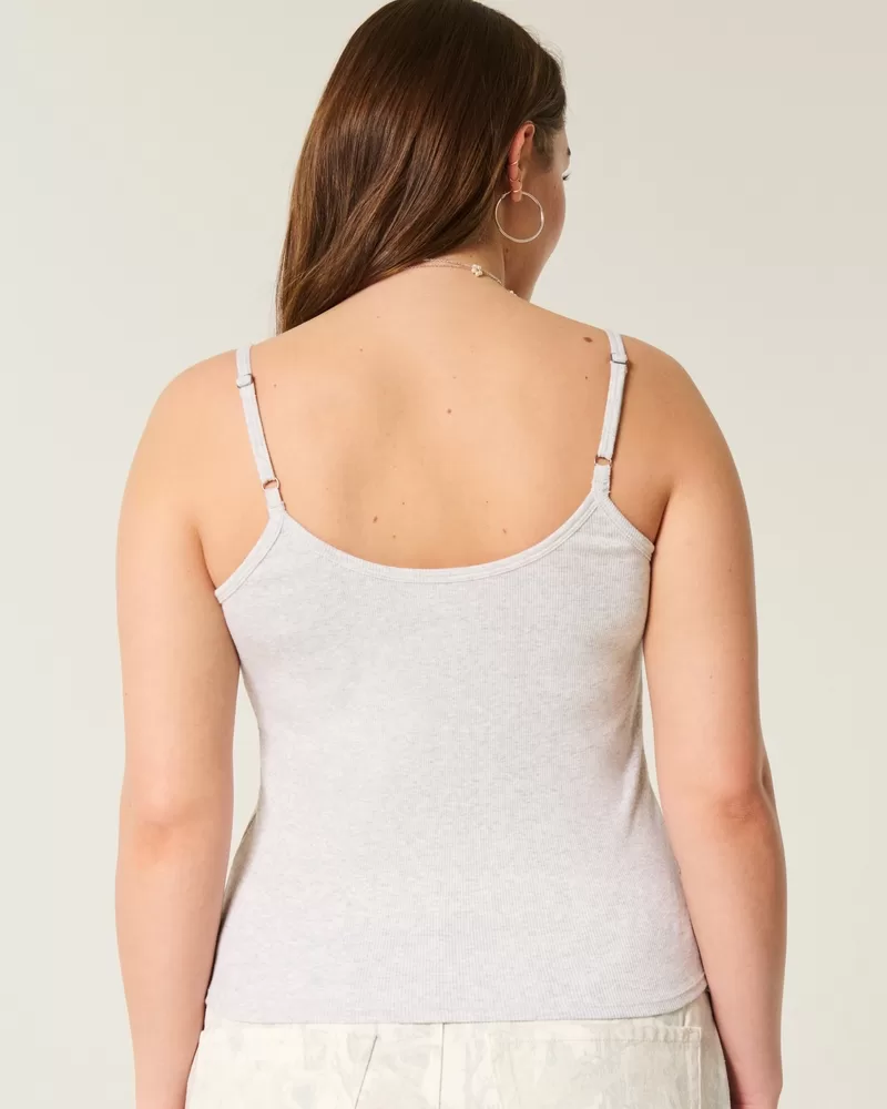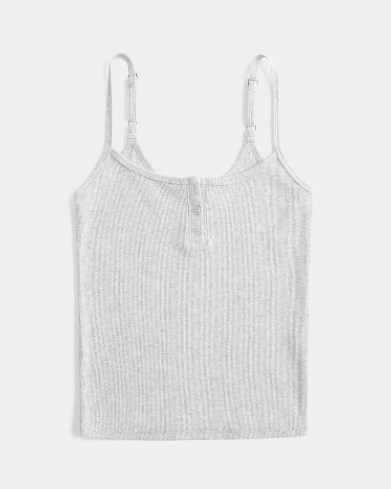 A super soft and comfy cami in ribbed fabric, designed with a notch button henley placket and adjustable straps. Slim Fit.