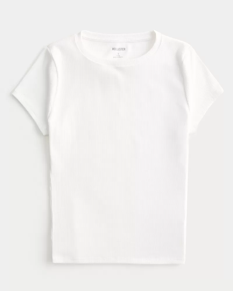 An ultra-comfortable top in super soft ribbed fabric with a seamless look and feel. Crew neckline, short sleeves, longer length. Slim Fit.