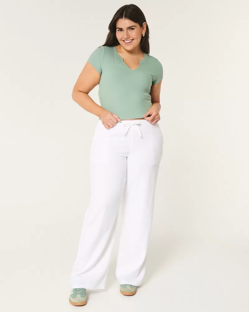 This cute and comfy baby tee is made with super soft ribbed fabric with a seamless look and feel. Short sleeves, notch neckline, slightly shrunken silhouette. Slim Fit.