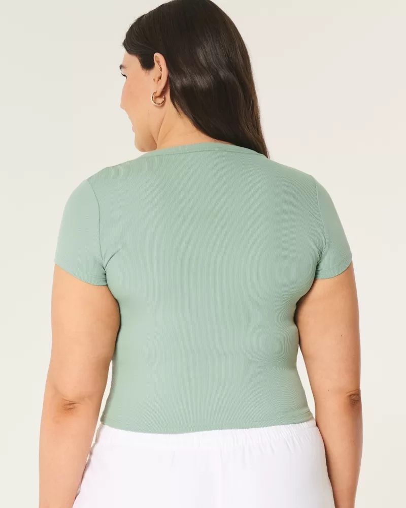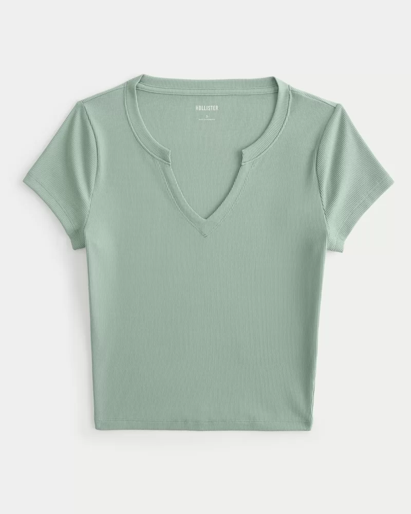 Ribbed Seamless Fabric Notch Neck Baby Tee