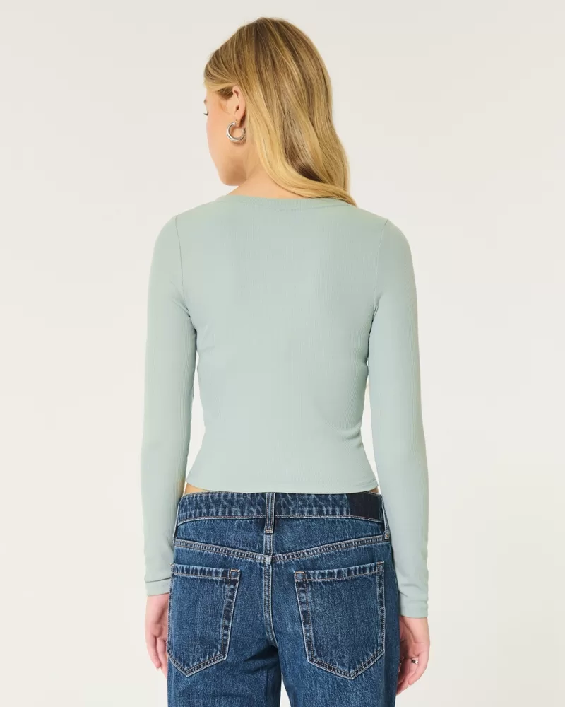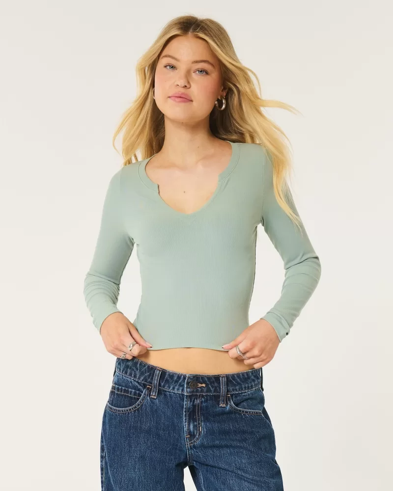 Ribbed Seamless Fabric Notch-Neck Top