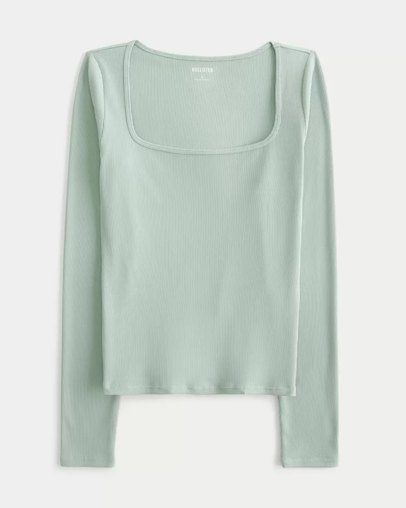 An ultra-soft and cozy long-sleeve top in ribbed fabric with a seamless look and feel. Square neckline, long sleeves. Slim Fit. Imported.