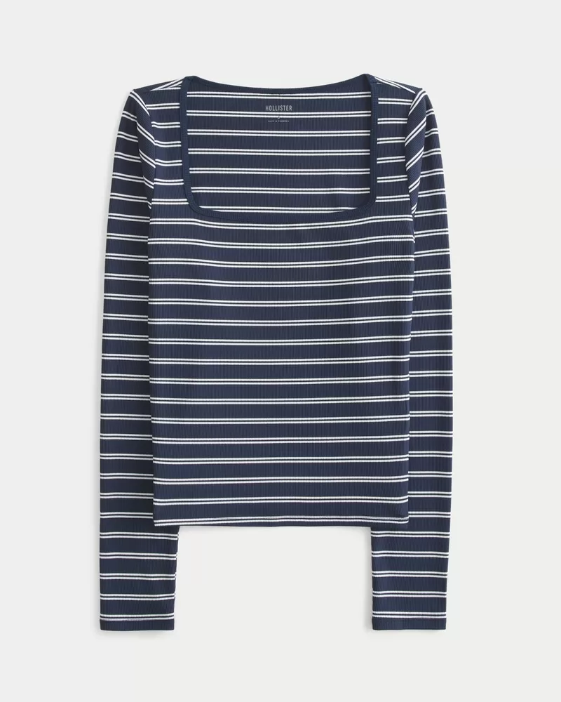 An ultra-soft and cozy long-sleeve top in ribbed fabric with a seamless look and feel. Square neckline, long sleeves. Slim Fit. Imported.