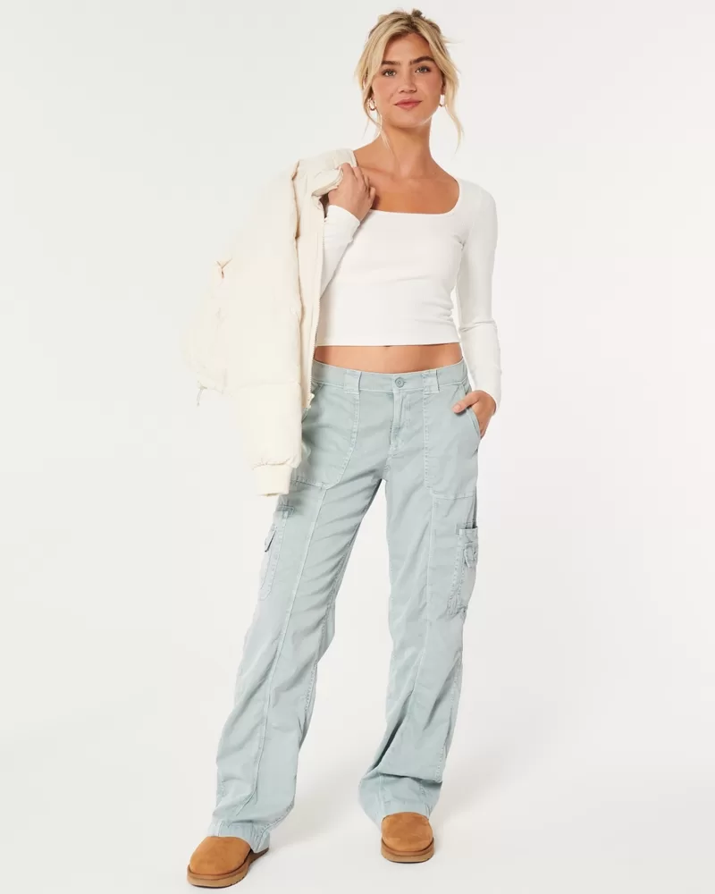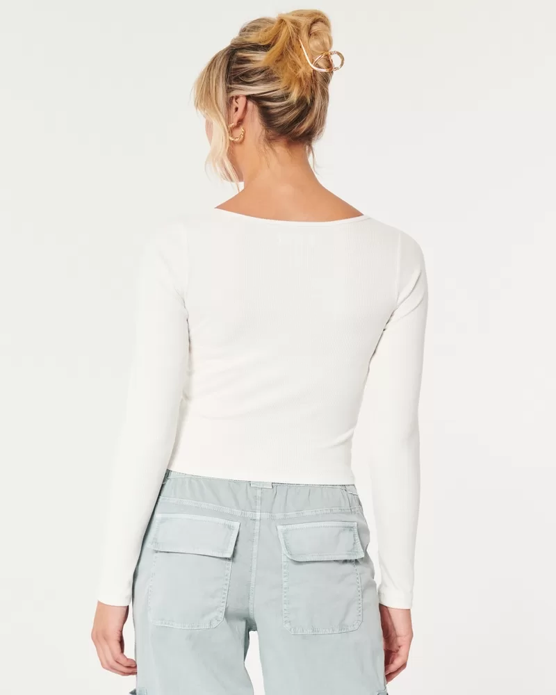 A cute and comfy long-sleeve top made with super soft ribbed fabric with a seamless look and feel. Square neckline. Slim Fit.