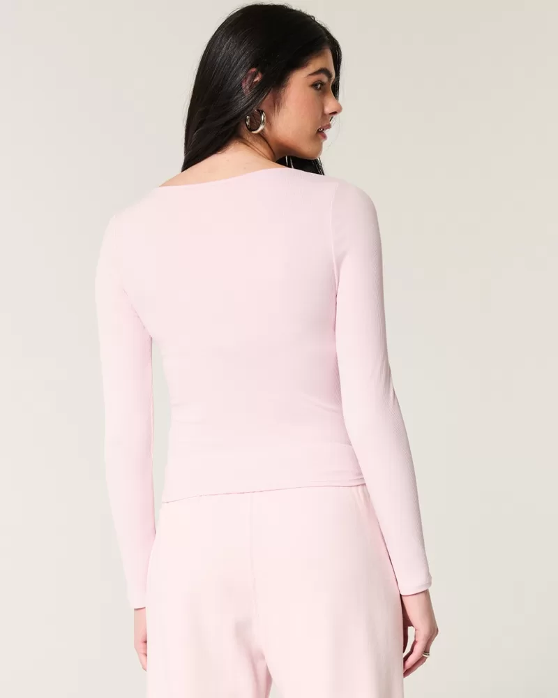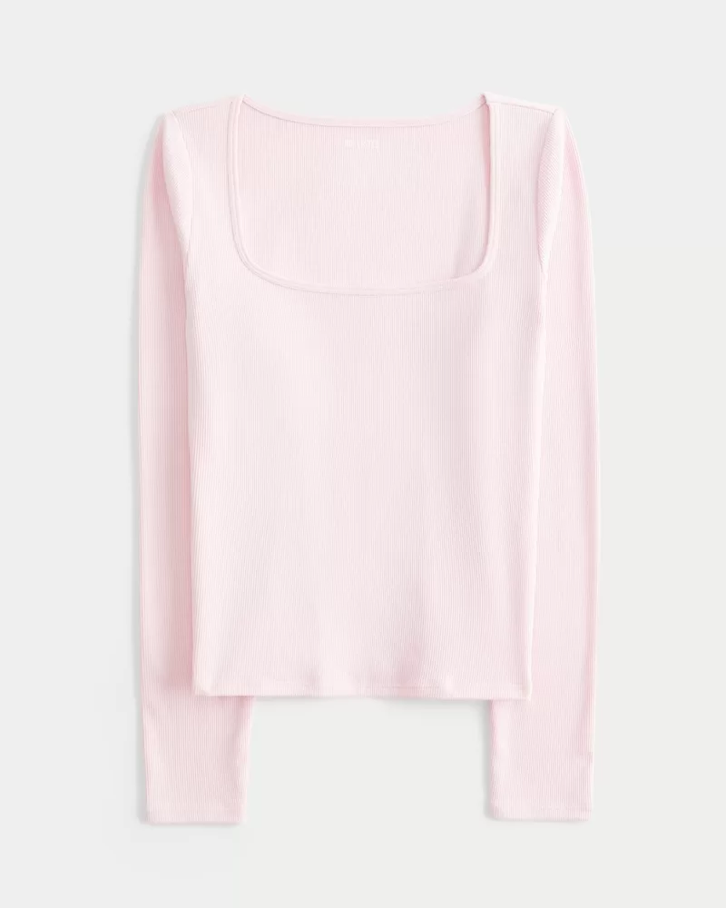An ultra-soft and cozy long-sleeve top in ribbed fabric with a seamless look and feel. Square neckline, long sleeves. Slim Fit.