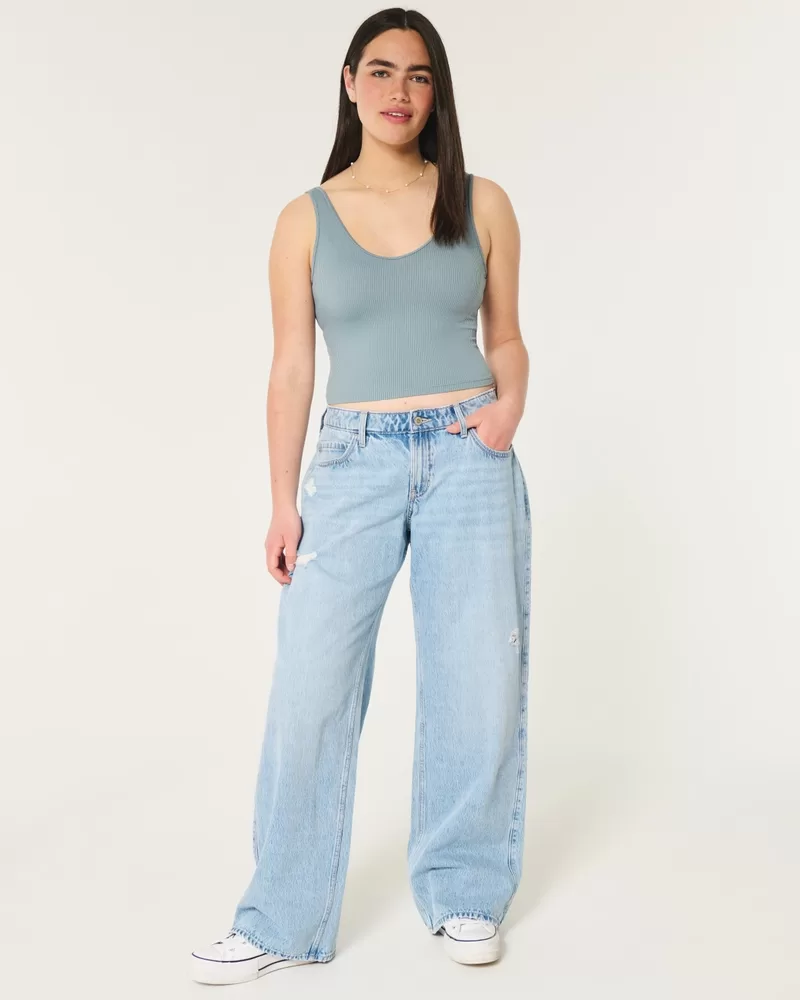 An ultra-comfy tank in super soft ribbed fabric with a seamless look and feel. V-neckline. Slim Fit.