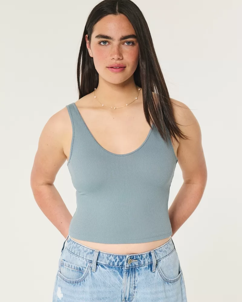 Ribbed Seamless Fabric V-Neck Tank