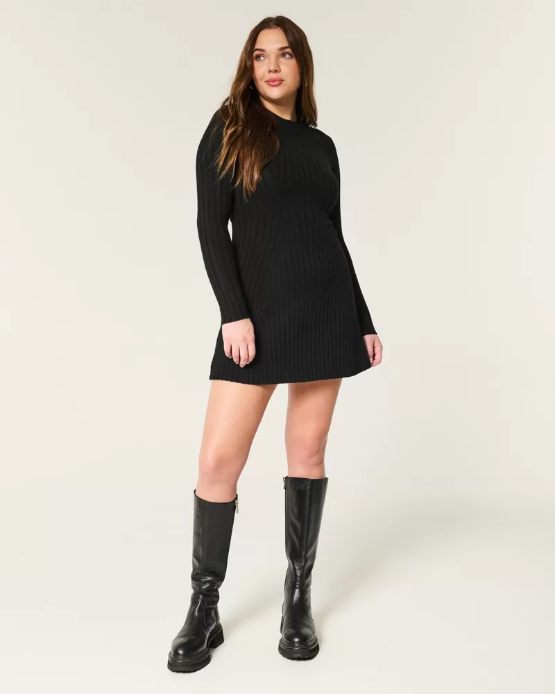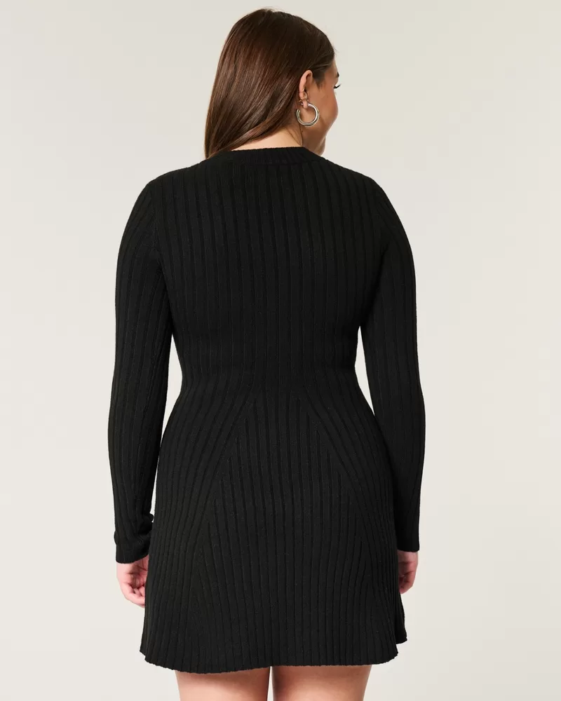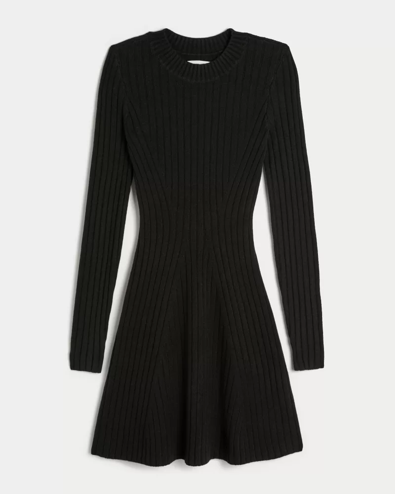Ribbed Skater Mini Sweater Dress
