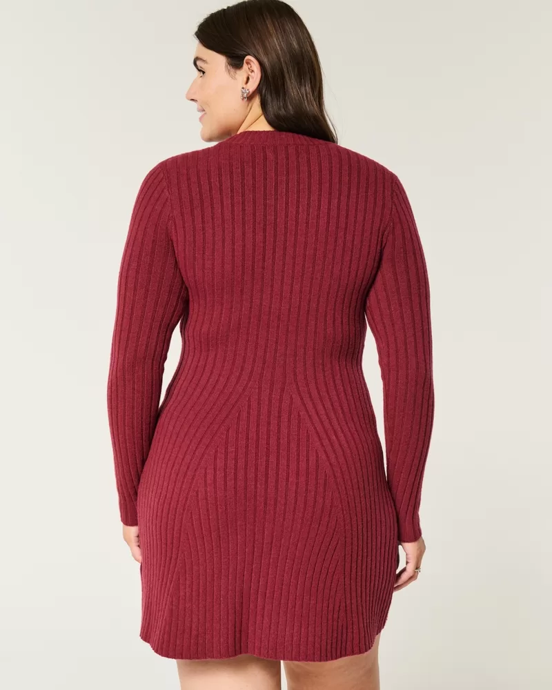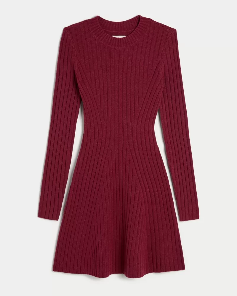 Ribbed Skater Mini Sweater Dress