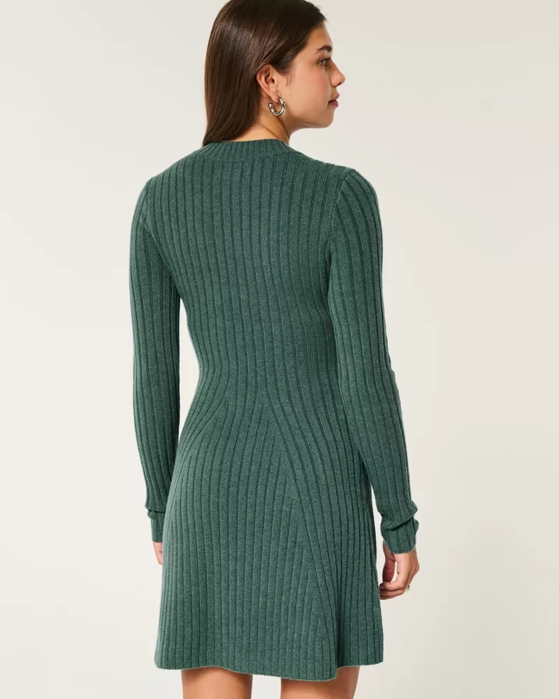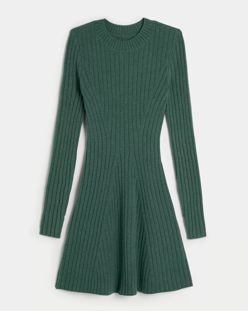 Ribbed Skater Mini Sweater Dress