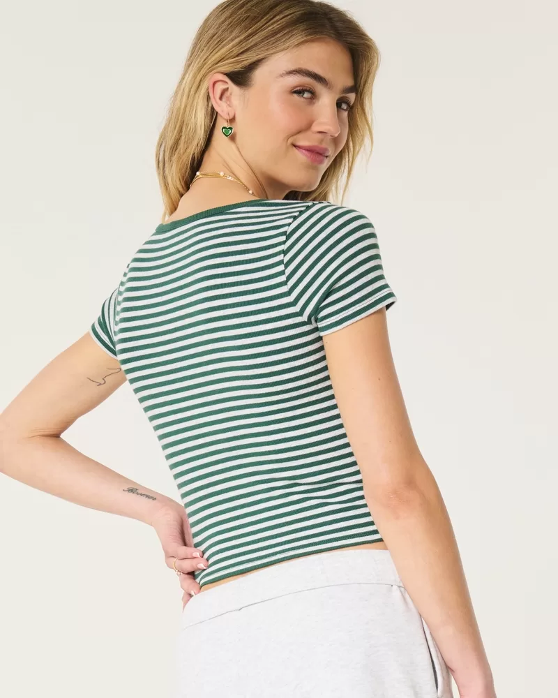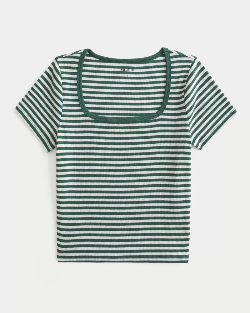 Ribbed Square-Neck Baby Tee,Ribbed Square-Neck Baby Tee