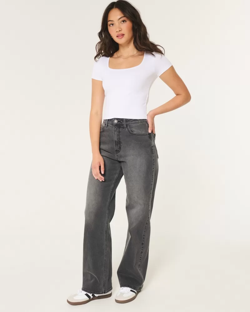 This comfy baby tee is made with super soft fabric with a seamless look and feel. Square neckline, short sleeves. Slim Fit.