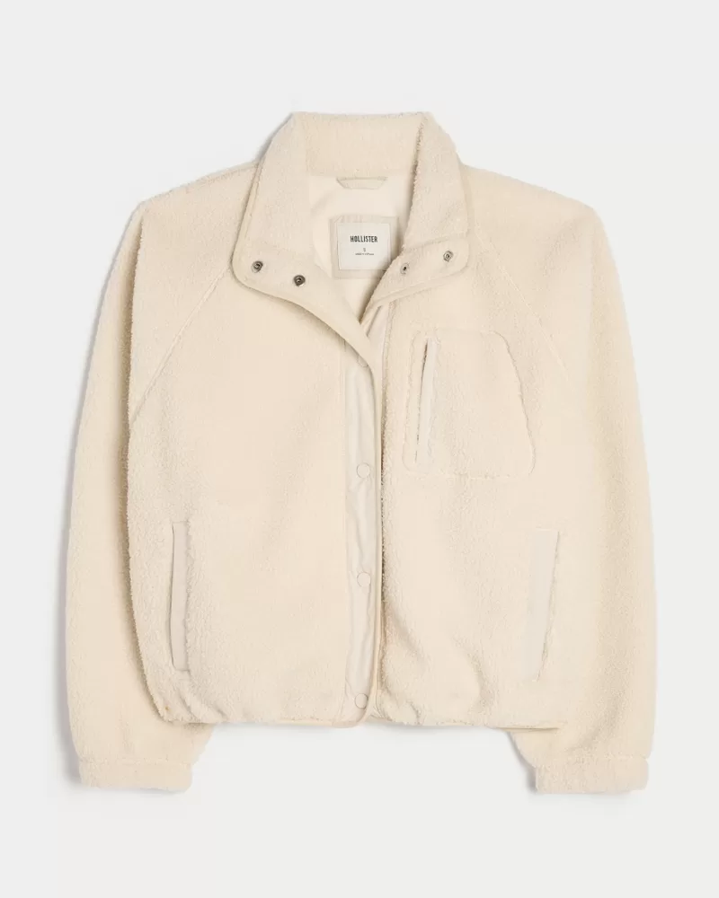 A super soft jacket in cozy sherpa fabric, designed with a full snap closure, exterior zipper chest pocket and front pockets.