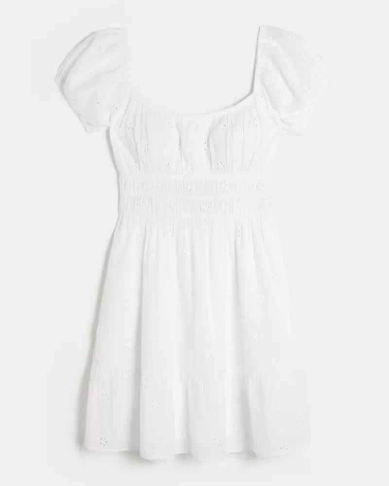 Short-Sleeve Channeled Waist Mini Dress