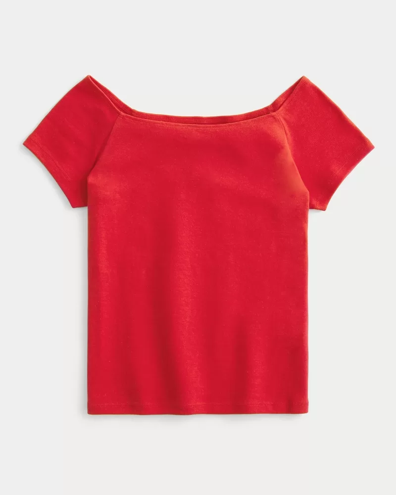 Short Sleeve Skimming Off-the-Shoulder Top