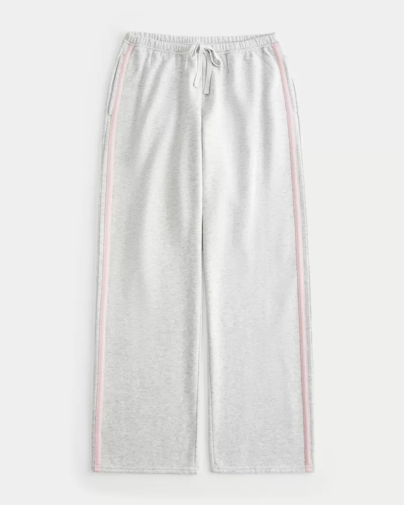 Super soft fleece sweatpants with a straight leg and sporty stripes along the sides. Soft drawstring waist, pockets.