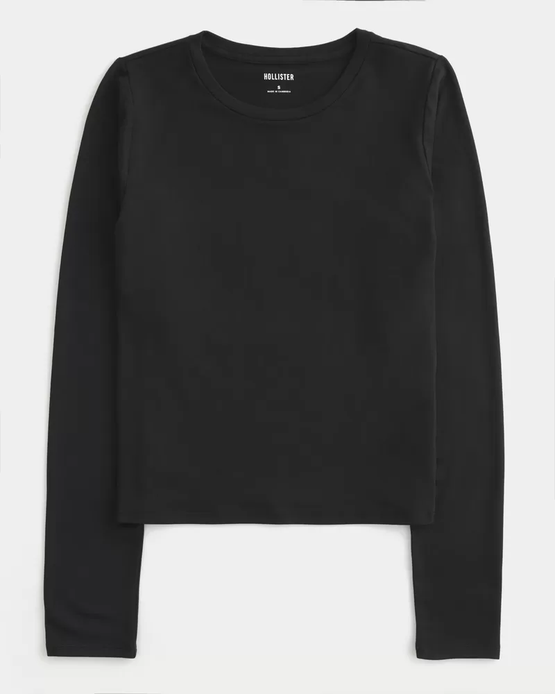 A comfortable long-sleeve top in soft stretch fabric with a seamless look and feel. Crew neckline. Slim Fit.
