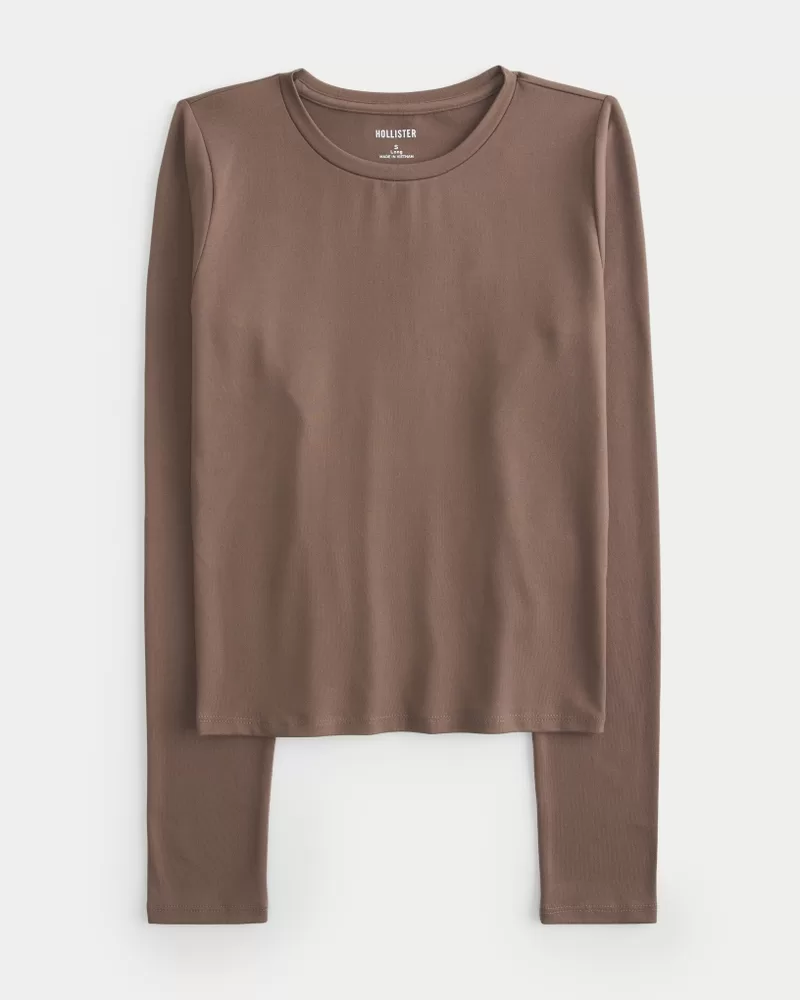 Soft Stretch Seamless Fabric Long-Sleeve Crew Top