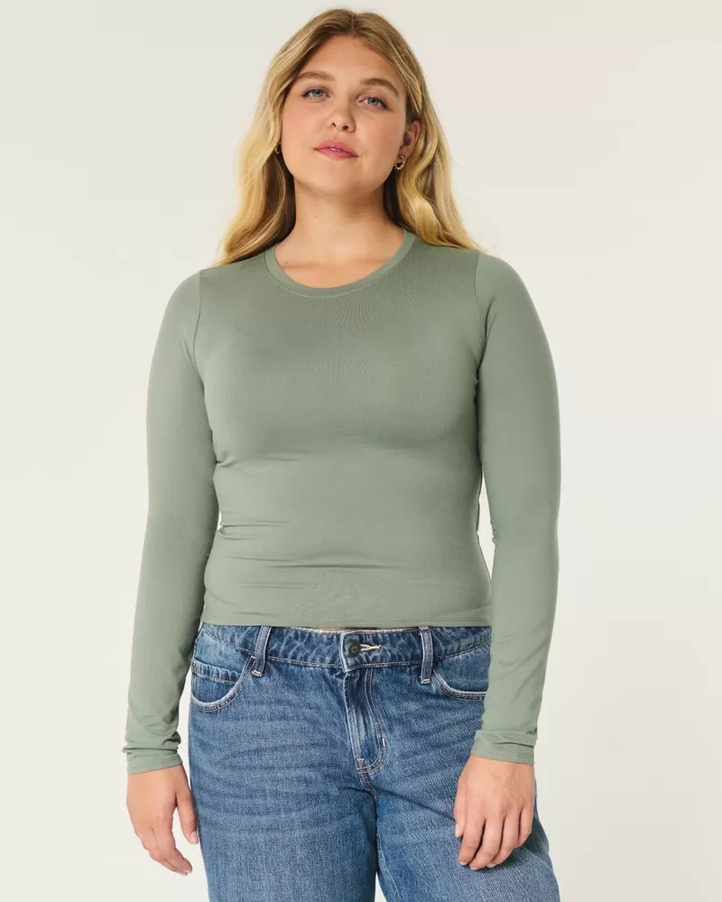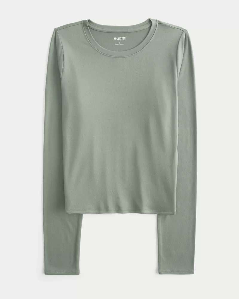 Comfy and super soft, this long-sleeve top is made with soft stretch fabric with a seamless look and feel. Crew neckline, long sleeves. Slim Fit.