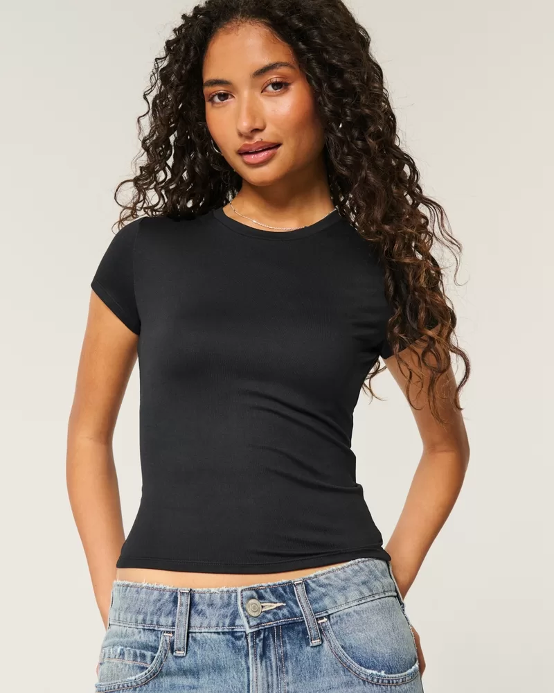 Soft Stretch Seamless Fabric Longline Baby Tee,Soft Stretch Seamless Fabric Longline Baby Tee