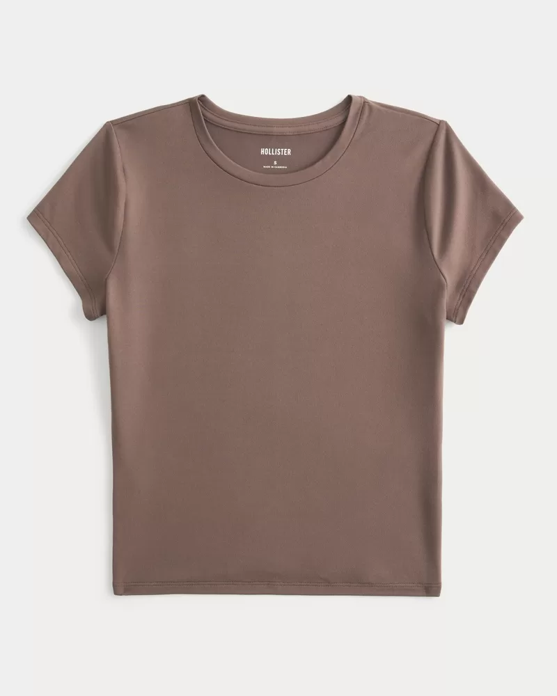 This cute and comfy baby tee is made with soft stretch fabric with a seamless look and feel. Longline silhouette, crew neckline, short sleeves.