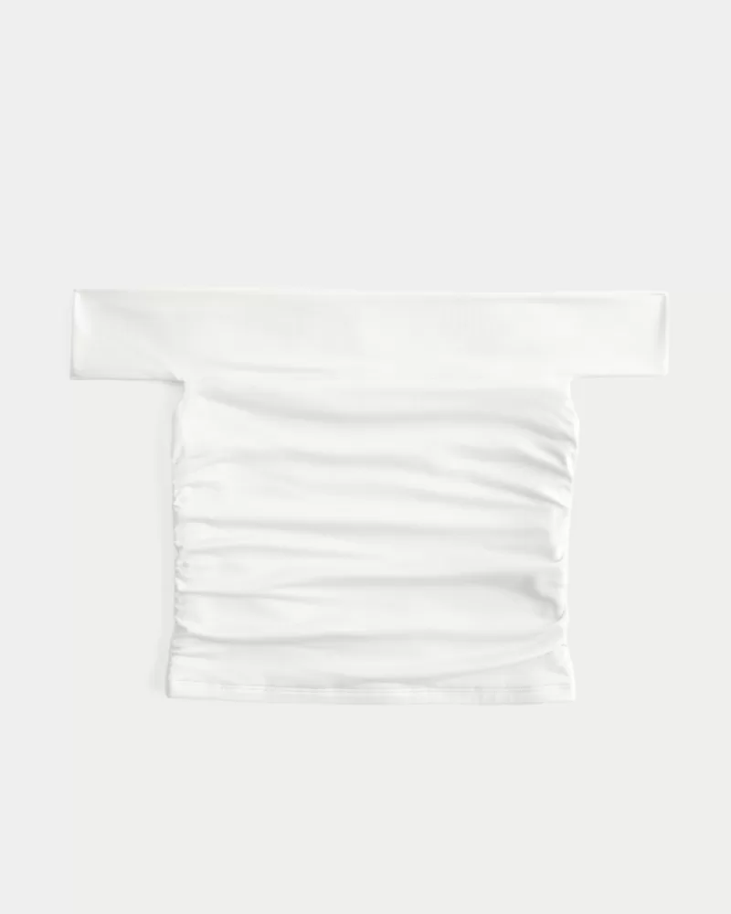 Soft Stretch Seamless Fabric Ruched Off-the-Shoulder Top