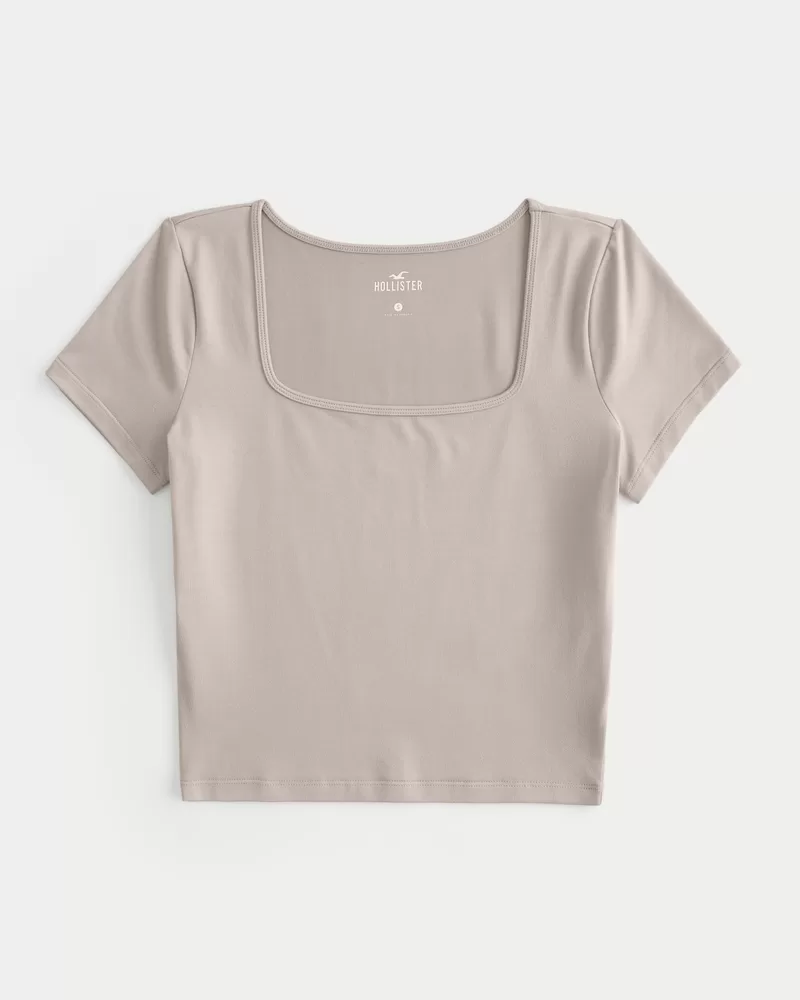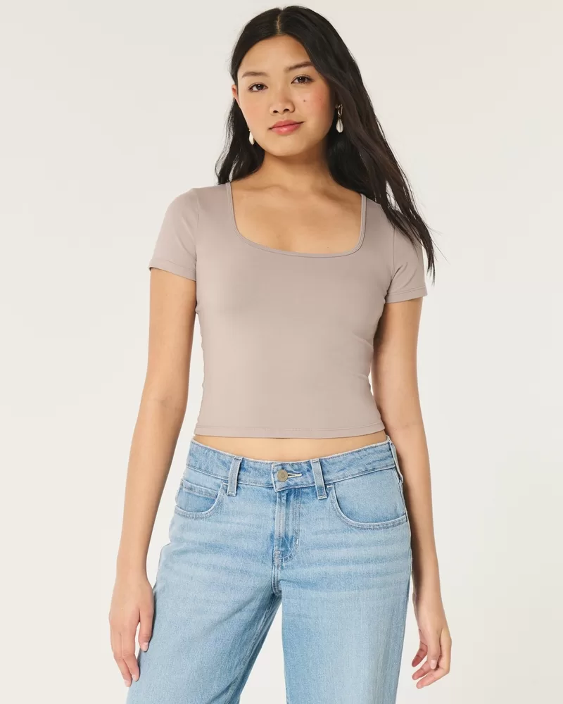 A comfy baby tee in soft stretch fabric made with a seamless look and feel. Square neckline, short sleeves. Slim Fit.