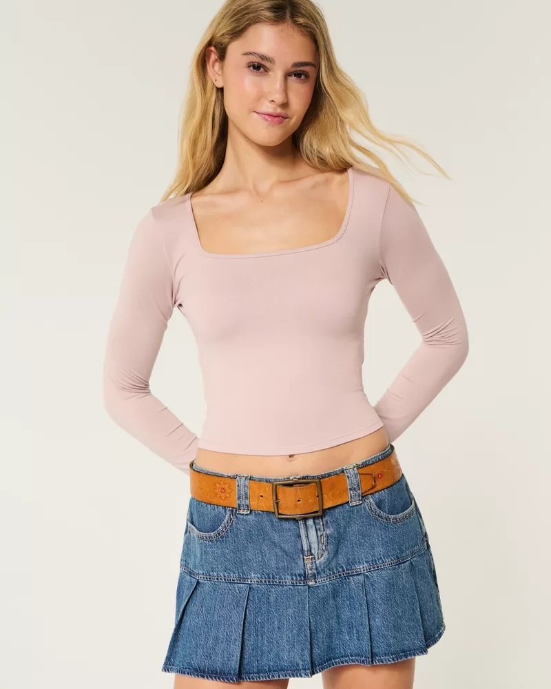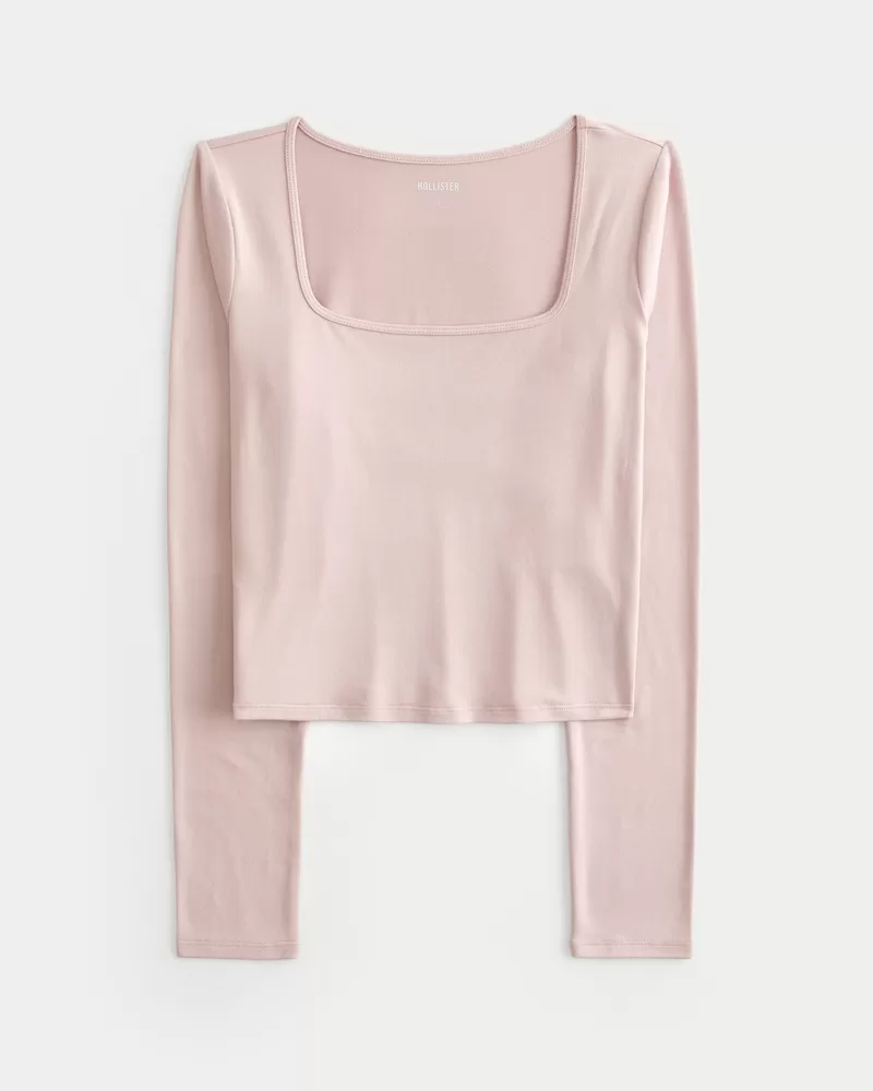 Soft Stretch Seamless Fabric Square-Neck Top