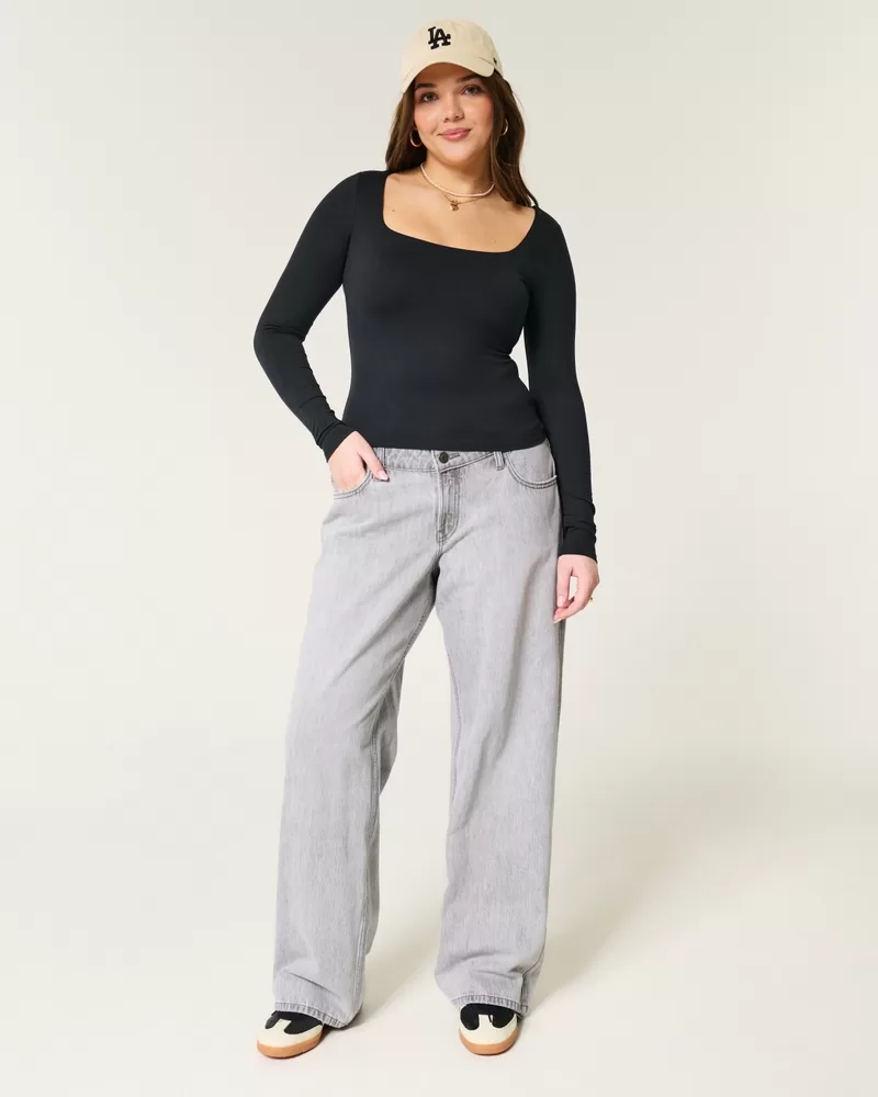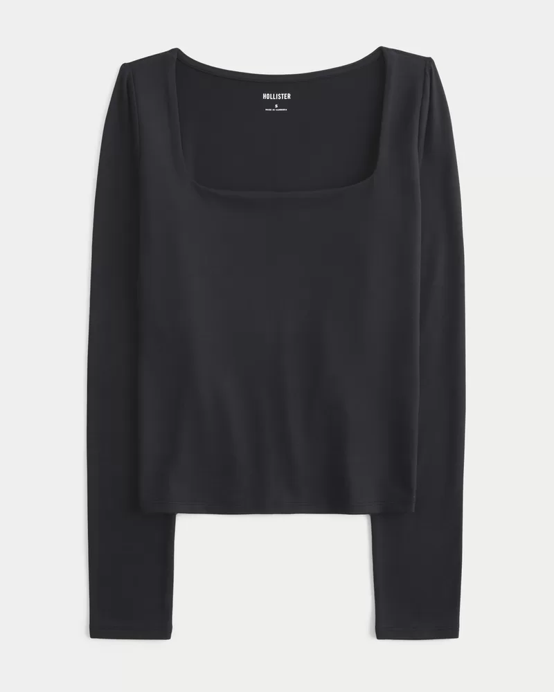 A cozy long-sleeve top in soft stretch fabric with a seamless look and feel. Square neckline, long sleeves. Slim Fit.