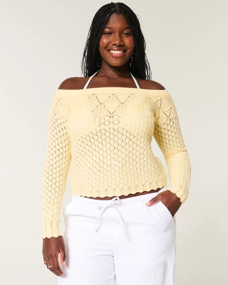 Stitchy Crochet-Style Off-the-Shoulder Sweater