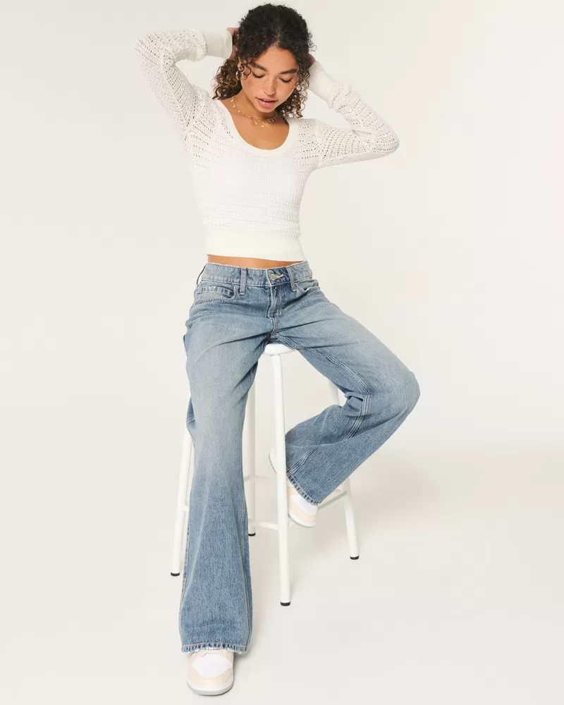 A cute and cozy sweater with super soft stitchy texture. Scoop neckline, long sleeves, ribbed trims. Slim Fit.