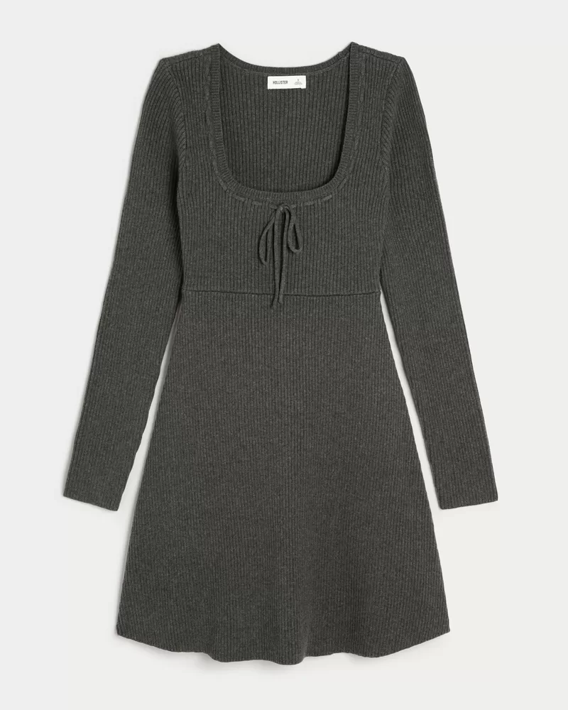 Super cute and comfortable, this long-sleeve mini dress features a passementerie neckline detail. Long sleeves, cozy sweater-knit fabric, skater silhouette.