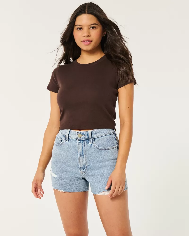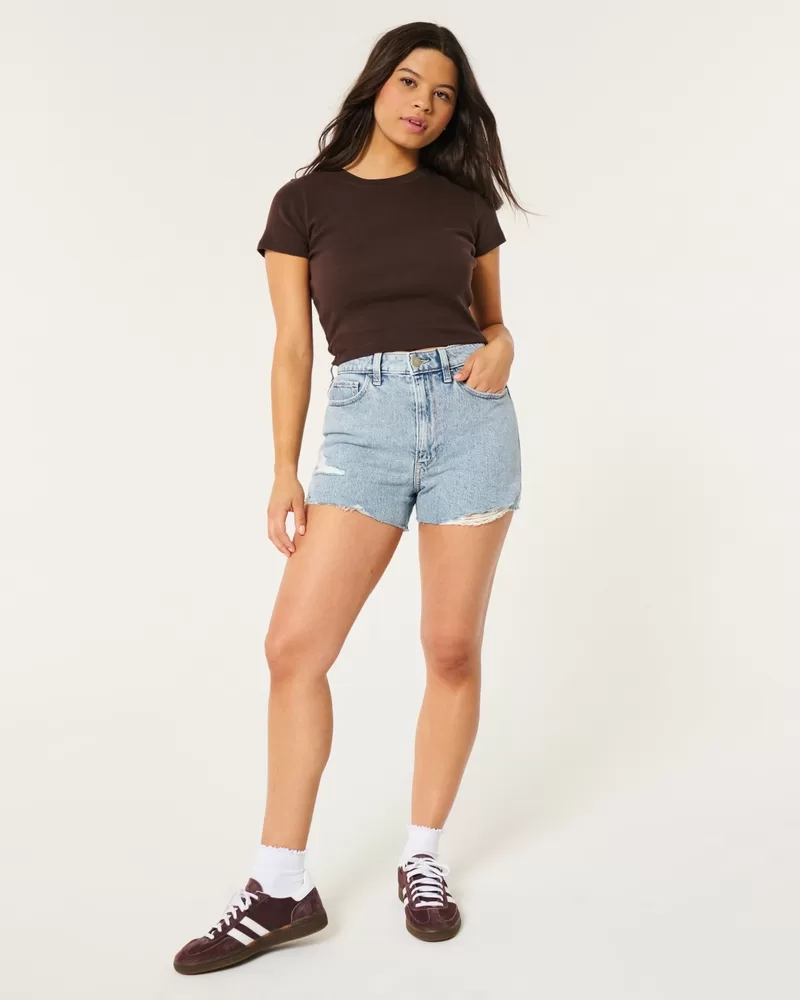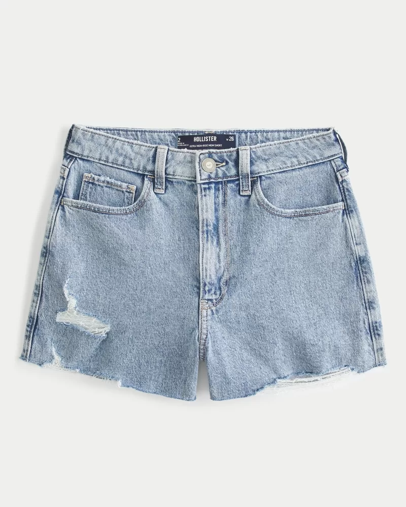 Ultra High-Rise Ripped Light Wash Denim Mom Shorts